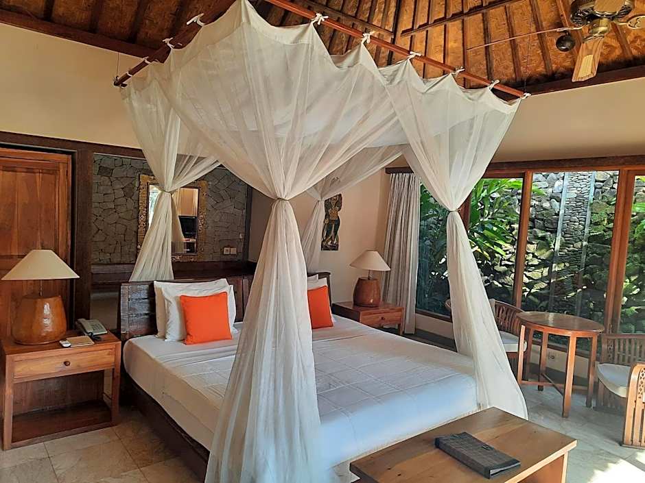 Set in the lush outskirts of Ubud, about 1,1 mil from the city center, this 4-star retreat invites a relaxed yet stylish stay. Breakfast is served on site, and guests can dip into a private pool or the outdoor pool (free access), dine at a on-site restaurant, and enjoy free private parking. Free wifi and a shuttle service (also free) add convenience, with an airport shuttle available for a small extra charge for those chasing last-minute adventures.